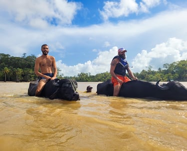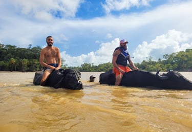 Se você gosta de viver no limite, esse é seu passeio! Uma aventura no cenário que já recebeu o programa No Limite nos apresenta tudo que o Marajó oferece. A beleza selvagem da praia do Goiabal, a grandeza e mistério dos manguezais e o encanto da floresta amazônica. Claro que podemos fazer isso montados em búfalos. Mas era emoção que vocês queriam, não era? Os búfalos são ótimos nadadores e no percurso atravessam um rio. Quem tem coragem de acompanhar?